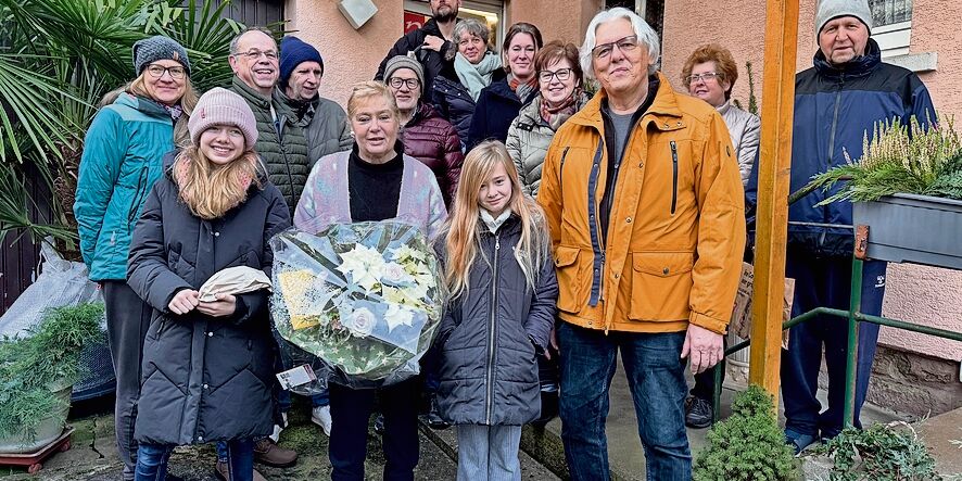 Am 22. Dezember überraschte eine große Schar treuer Kundinnen und Kunden Rita Zimmermann vor ihrem Laden und überreichte ihr als Zeichen der Dankbarkeit für die vielen Jahre des Einkaufens mit kurzem Weg und der netten Gespräche einen großen Blumenstrauß. Sichtlich gerührt nahm sie das Geschenk entgegen und bedankte sich herzlich bei allen Anwesenden.