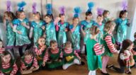 Zum Schluss war der Höhepunkt: Unsere Purzelgarde vom Faschingsverein Bergtheim unter der Leitung von Isabell Sauer und Nadine Wunderling kamen mit 30 Kindern zu uns. Es wurde der Körperteilenblues getanzt. Weiter ging es mit Liedern der Lichterkinder.