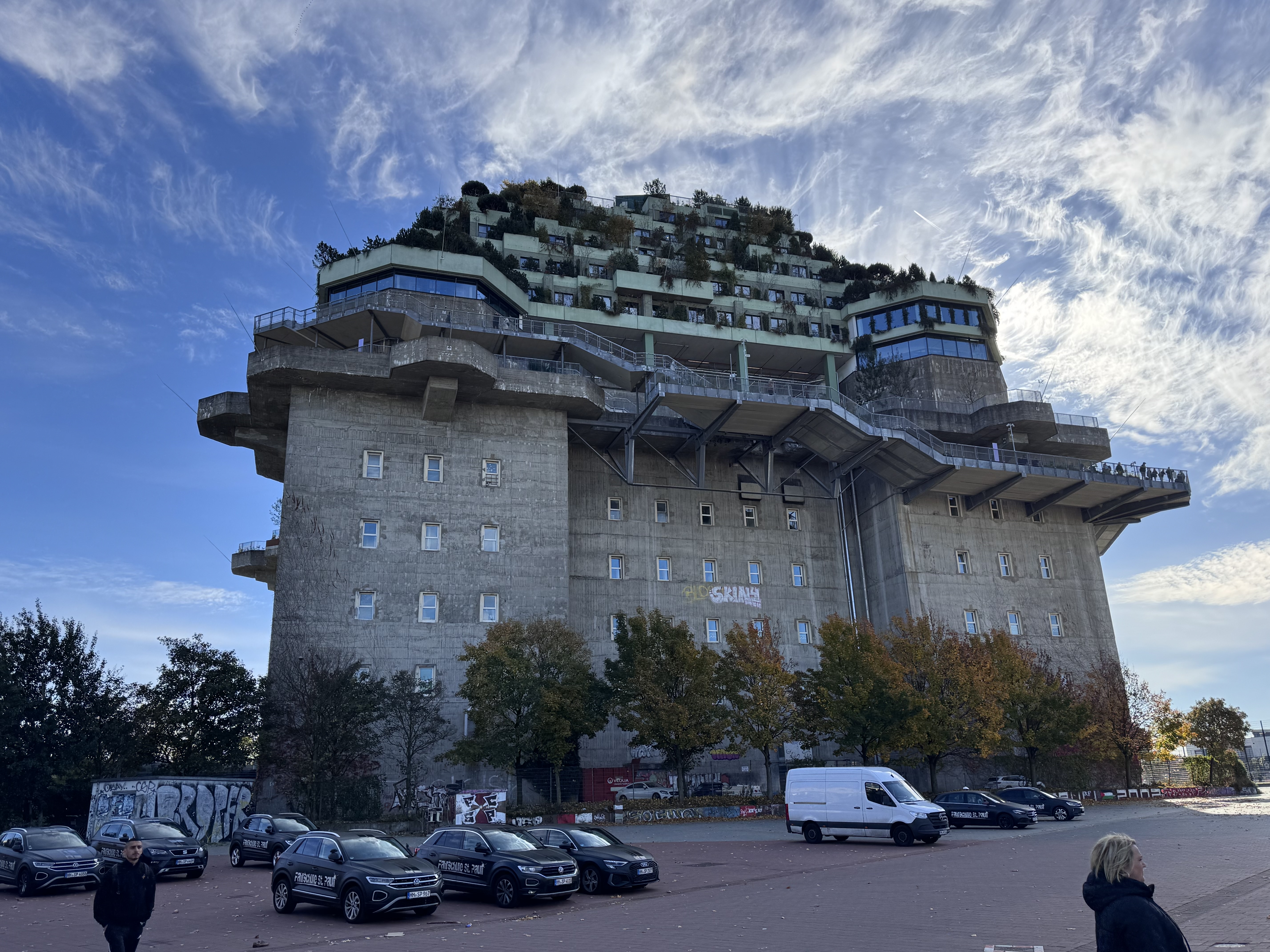Danach der Kontrast. Der massive, begrünte WWII Bunker an Feldstraße und Heiligengeistfeld. Ein Mahnmal wie auch Symbol für Wandel. Umgebaut zum pulsierenden Hub mit aussichtsreicher Dachterrasse.