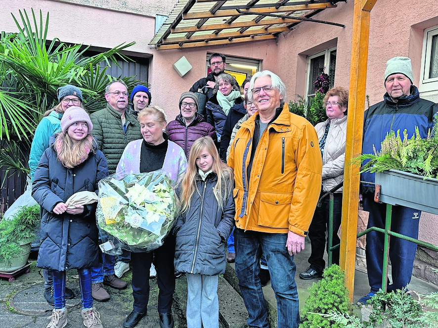 Am 22. Dezember überraschte eine große Schar treuer Kundinnen und Kunden Rita Zimmermann vor ihrem Laden und überreichte ihr als Zeichen der Dankbarkeit für die vielen Jahre des Einkaufens mit kurzem Weg und der netten Gespräche einen großen Blumenstrauß. Sichtlich gerührt nahm sie das Geschenk entgegen und bedankte sich herzlich bei allen Anwesenden.