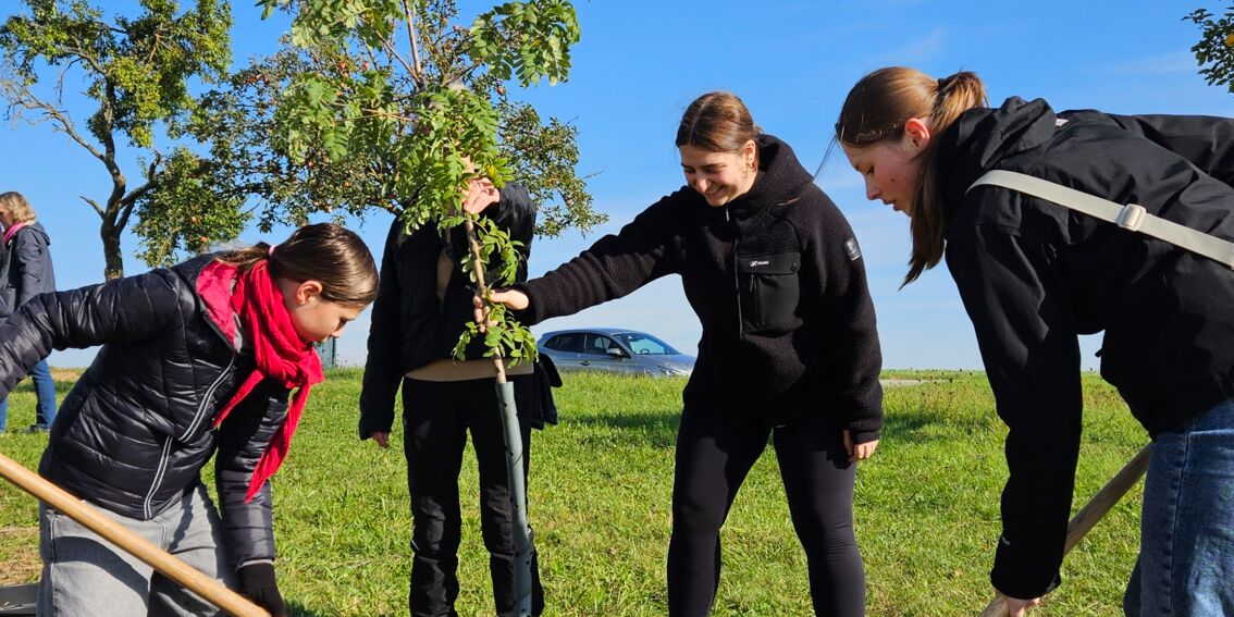 Am Tag der Deutschen Einheit fand in Estenfeld erneut das „Einheitsbuddeln“ statt. Bei sonnigem Herbstwetter beteiligten sich fast 40 Helferinnen und Helfer an der Pflanzaktion, die seit 2020 vom Ortsverband Bündnis 90/Die Grünen organisiert wird. Gemeinsam wurden in diesem Jahr neun neue Bäume gesetzt.